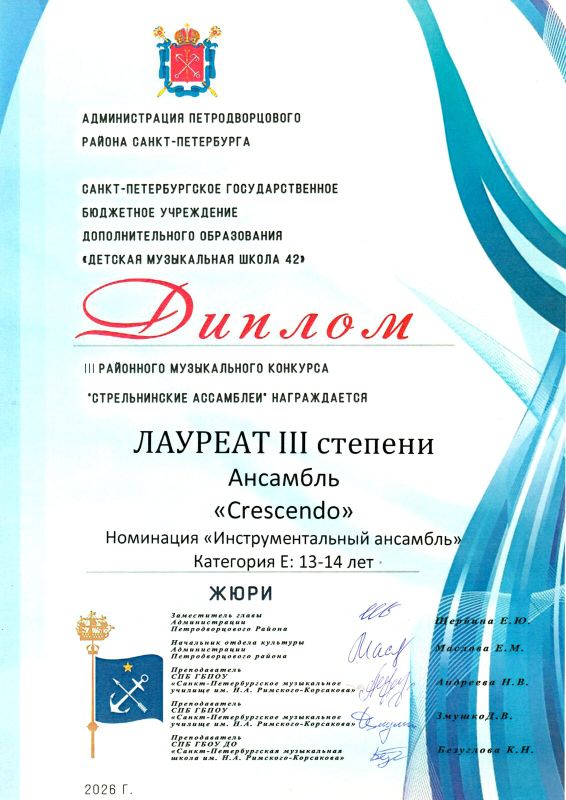 III районного музыкального конкурса "Стрельнинские ассамблеи", при поддержке Администрации Петродворцового района.