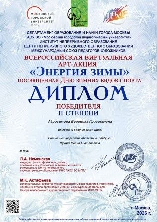 Абросимова Вероника стала победителем II степени во Всероссийской виртуальной арт‑акции «Энергия зимы», посвящённой Дню зимних видов спорта.