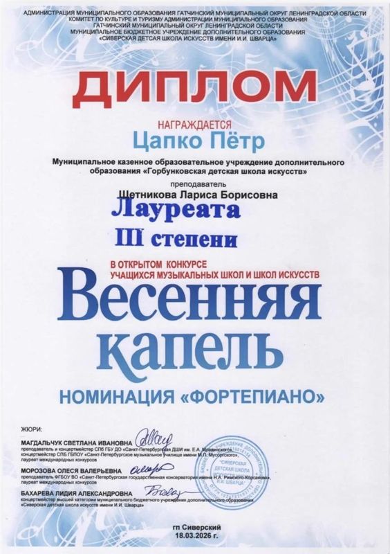 Открытый районный конкурс учащихся музыкальных школ и школ искусств по видам искусств «ВЕСЕННЯЯ КАПЕЛЬ» - 2026